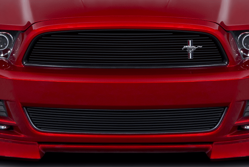 The Mustang Lower Billet Grille features 1/8” thick Aluminum fins and will install directly to your factory bumper with out any cutting or bending. Shown in black, also available in a Brushed finish (Please select Brushed or Black finish in options section). Fits GT, V6 & BOSS 302.