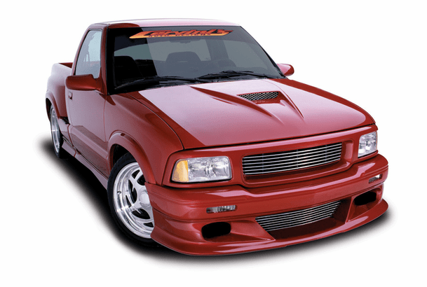Finished underside liner can be painted for show quality appearance. Pre-cut front air duct. Hood specs: width of scoop opening 12-1/2", height of scoop opening 1-5/8", highest point of Hood rise 1-1/4"